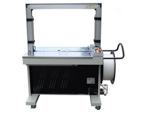自動打包機外形設計簡單美觀;電機+減速器+凸輪+緊縮臂運作;打包緊力可調,打包機運行穩定故障少,維修方便;